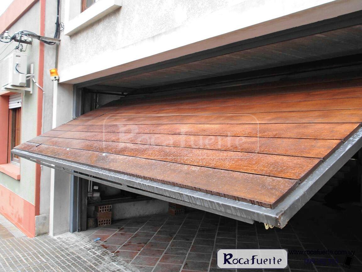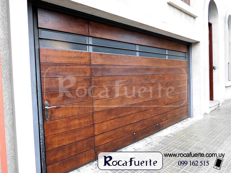 Portón basculante con puerta interna incluida, terminación en madera y ventanillas en la parte superior Portón basculante con puerta interna incluida, terminación en madera y ventanillas en la parte superior