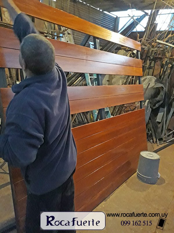 Porton de madera y vidrios en el taller en construccion Porton de madera y vidrios en el taller en construccion